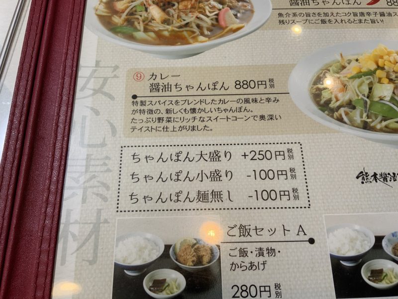 それ以外にも期間限定で「冷やしちゃんぽん」「黒マー油ちゃんぽん」などもありました。