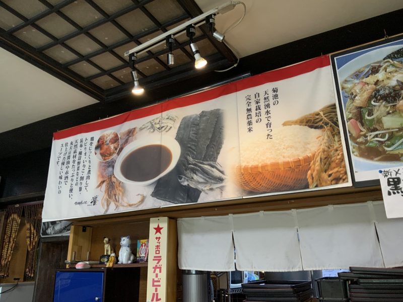 鶏を煮出したスープにトビウオ、いりこ、削り節、椎茸などで出汁をとっているそうです。厳選した丸大豆醤油に熊本の赤酒を使い、しっかり旨味を出しています。