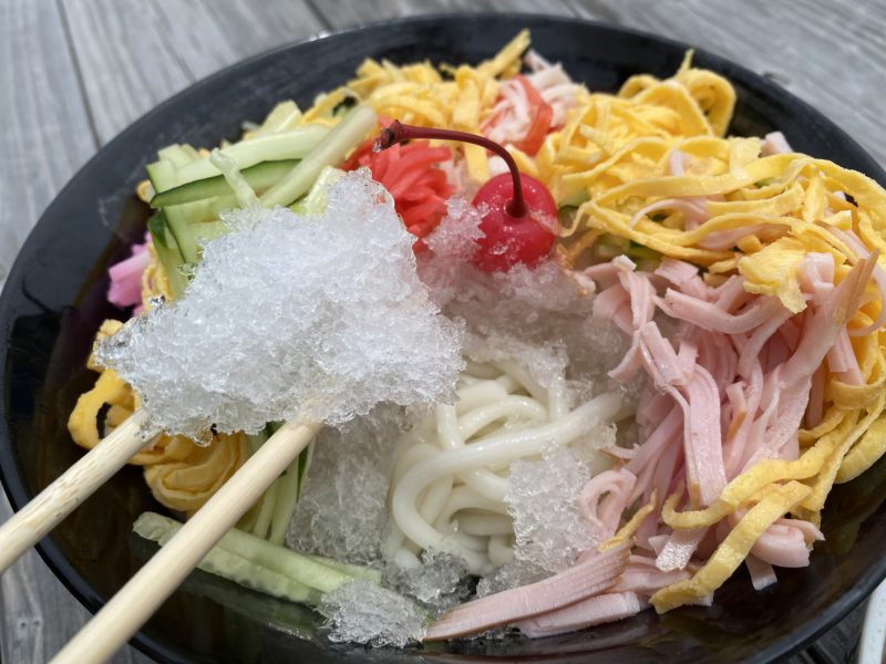氷の下からうどん麺が現れます。