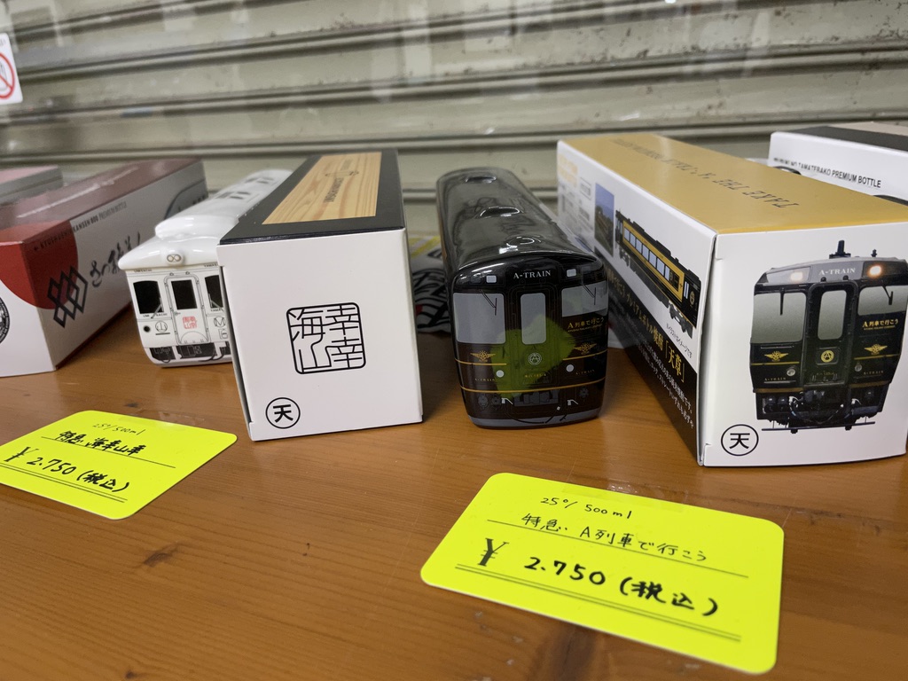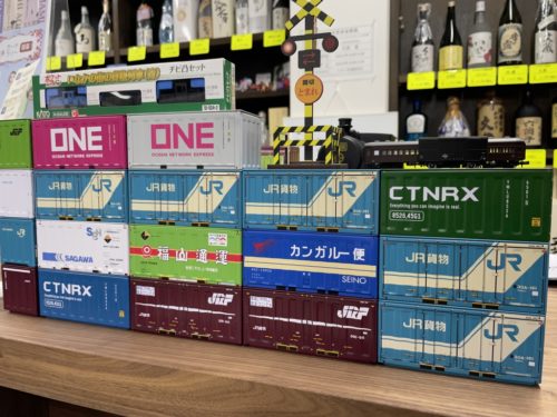 コンテナが積んであり、売ってある焼酎のボトルの中には