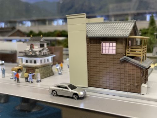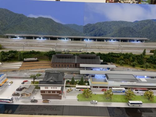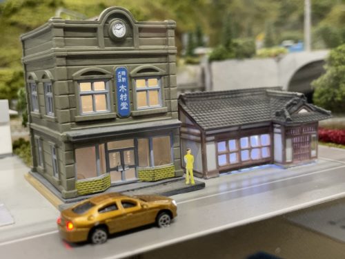 人吉駅前のお店を忠実に再現。車のブレーキランプ点いてるでしょ。