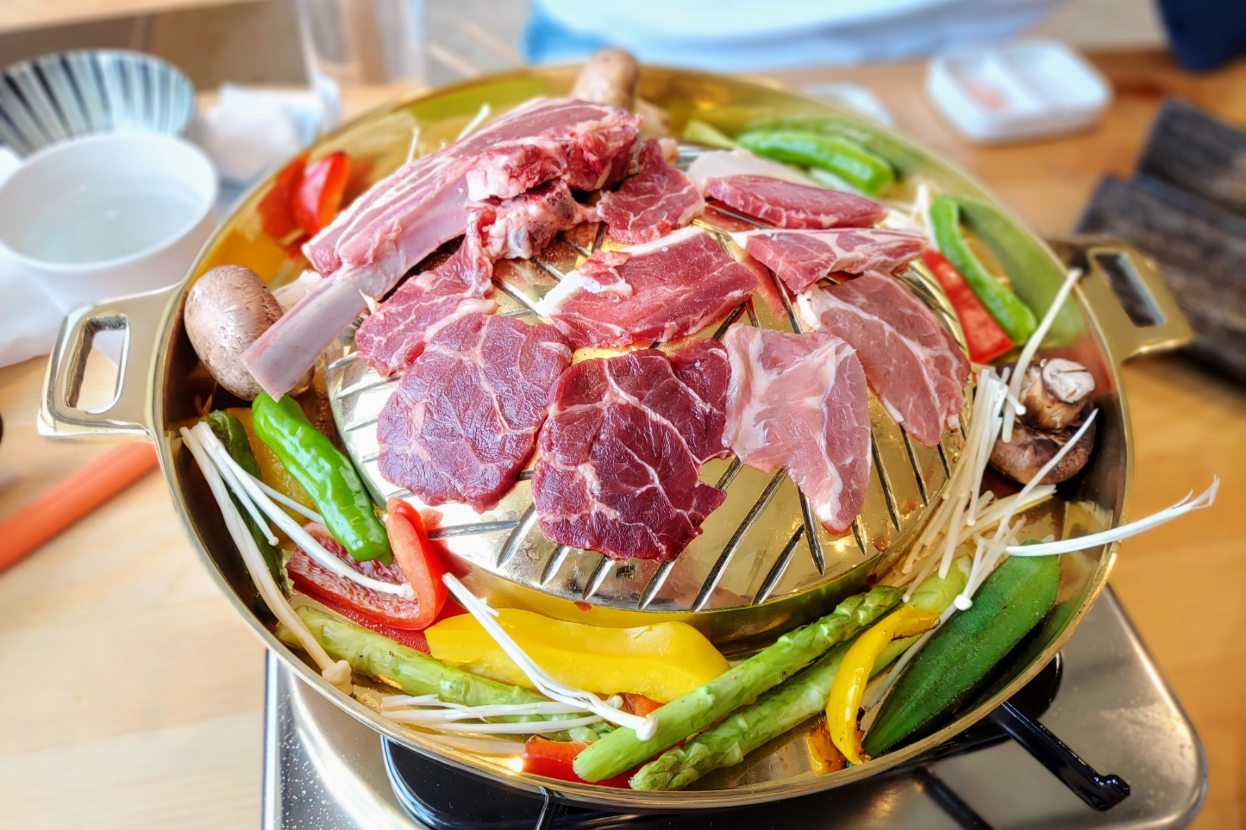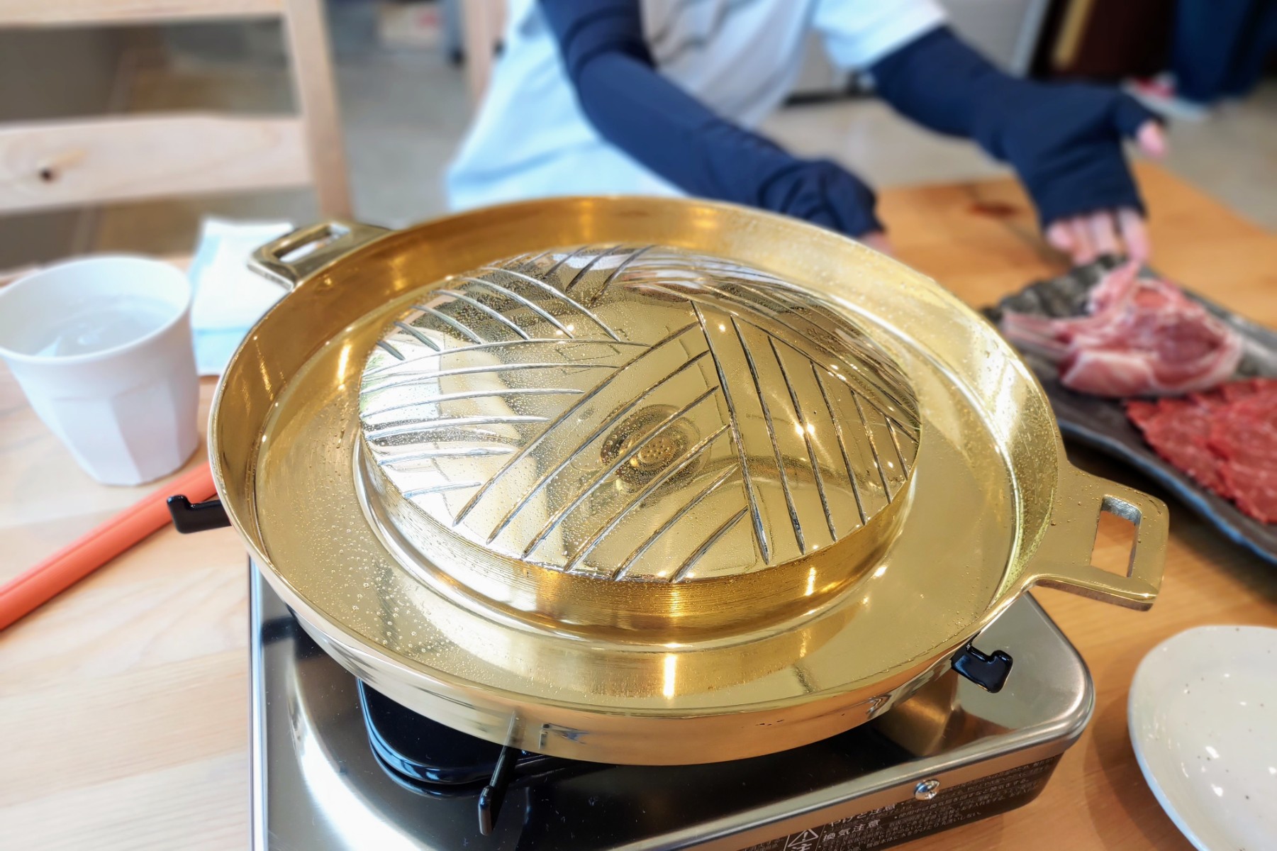 まずやってきたのは神々しいジンギスカン鍋。