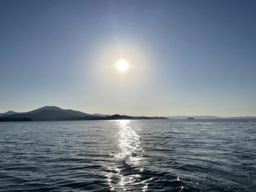 船はやじろべえのように不安定でした、手汗脇汗びっしょりでしたが、その状況とは裏腹に、空と海は美しすぎます。