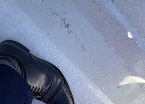 海水が侵入してます。(釣りなんかするつもりなかったから革靴)