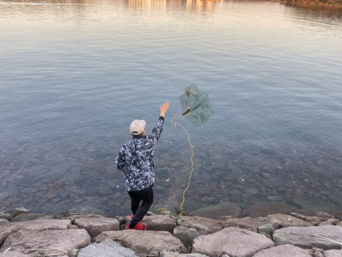 網を仕掛けて意地でも魚をGETするつもりらしいです…