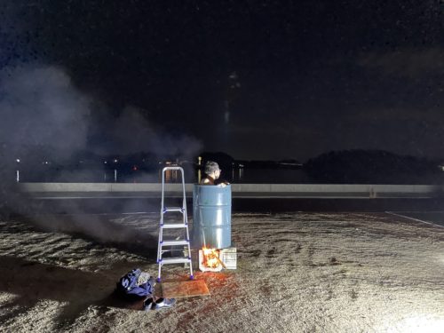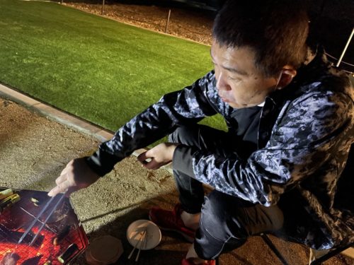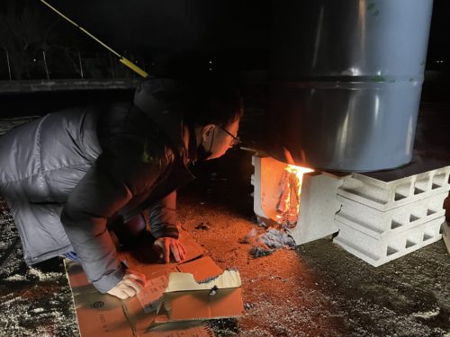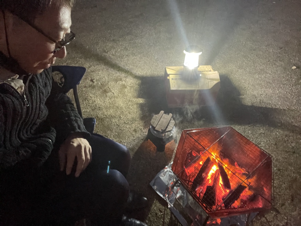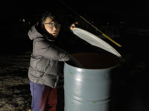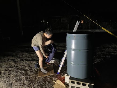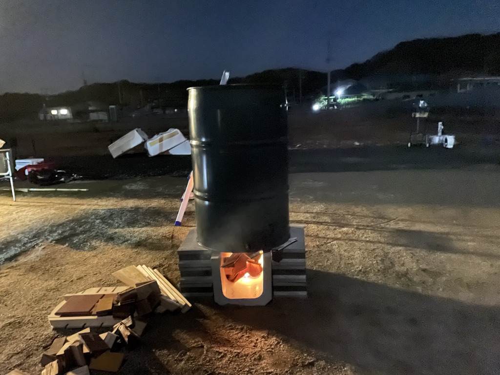ドラム缶風呂が沸くまで、つきっきりで薪をくべ、風を送りの繰り返し。