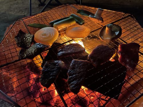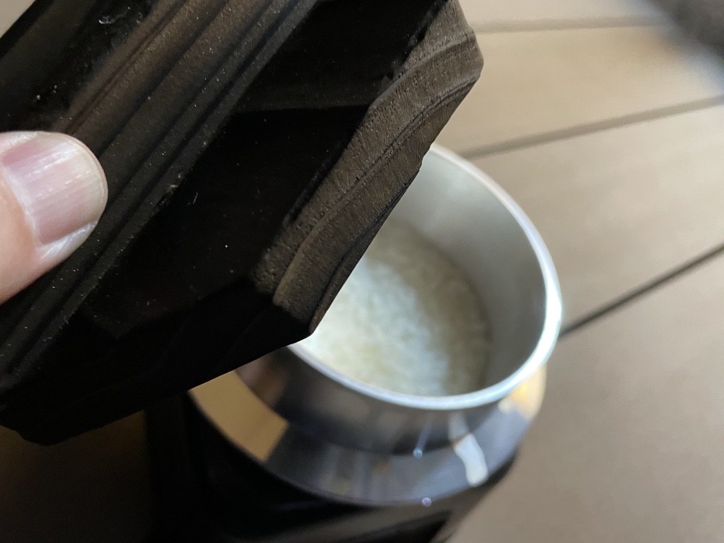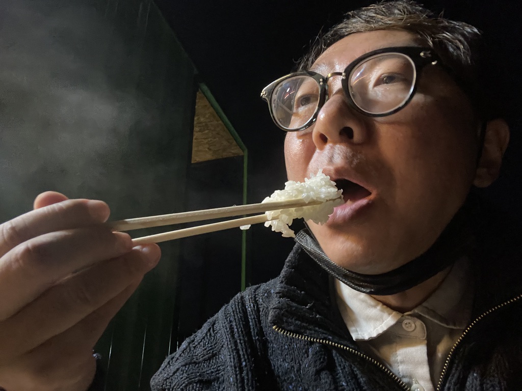 火を見てると心が落ち着きます、本当に来てよかた。足元では釜がグツグツ、いい感じで炊き上がりました。