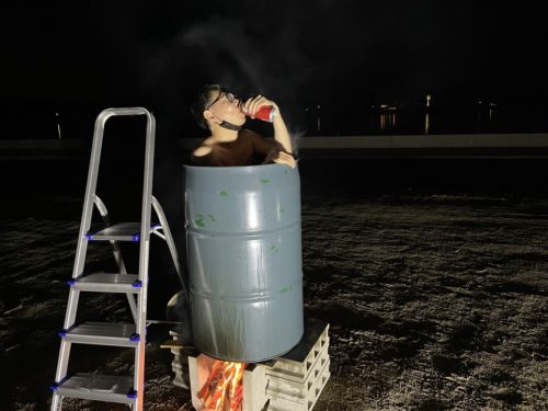 「見てわかるでしょ?ドラム缶風呂だよ」