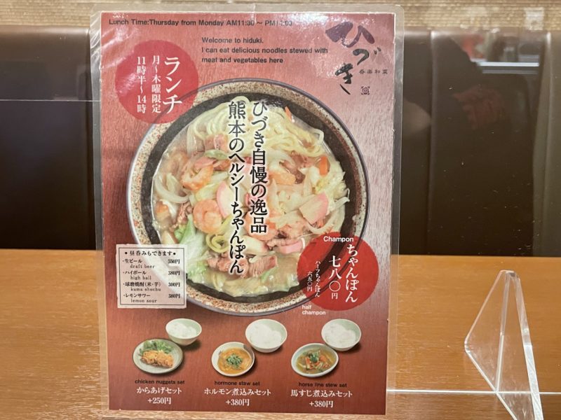定食がメインのランチメニューですが「和風だしちゃんぽん780円」がビカビカしてますね。