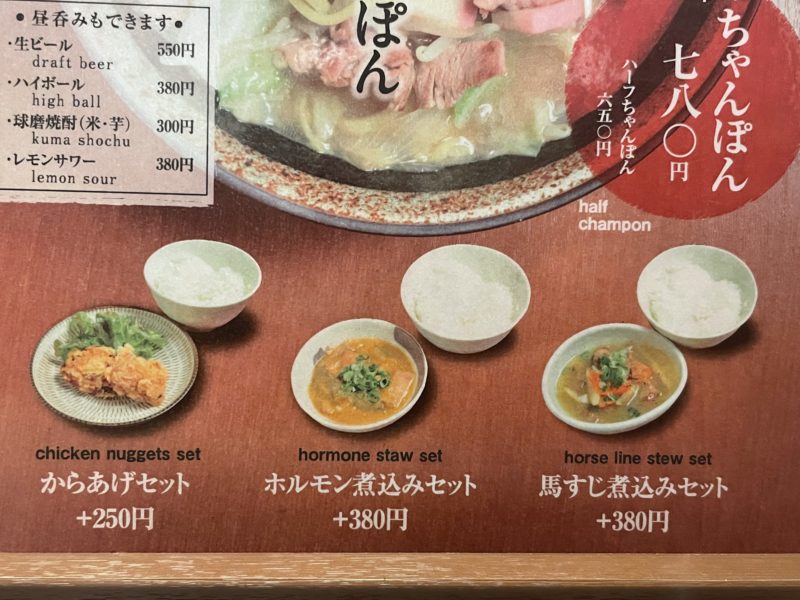 しかも、唐揚げ・ホルモン・馬すじとセットにできる!