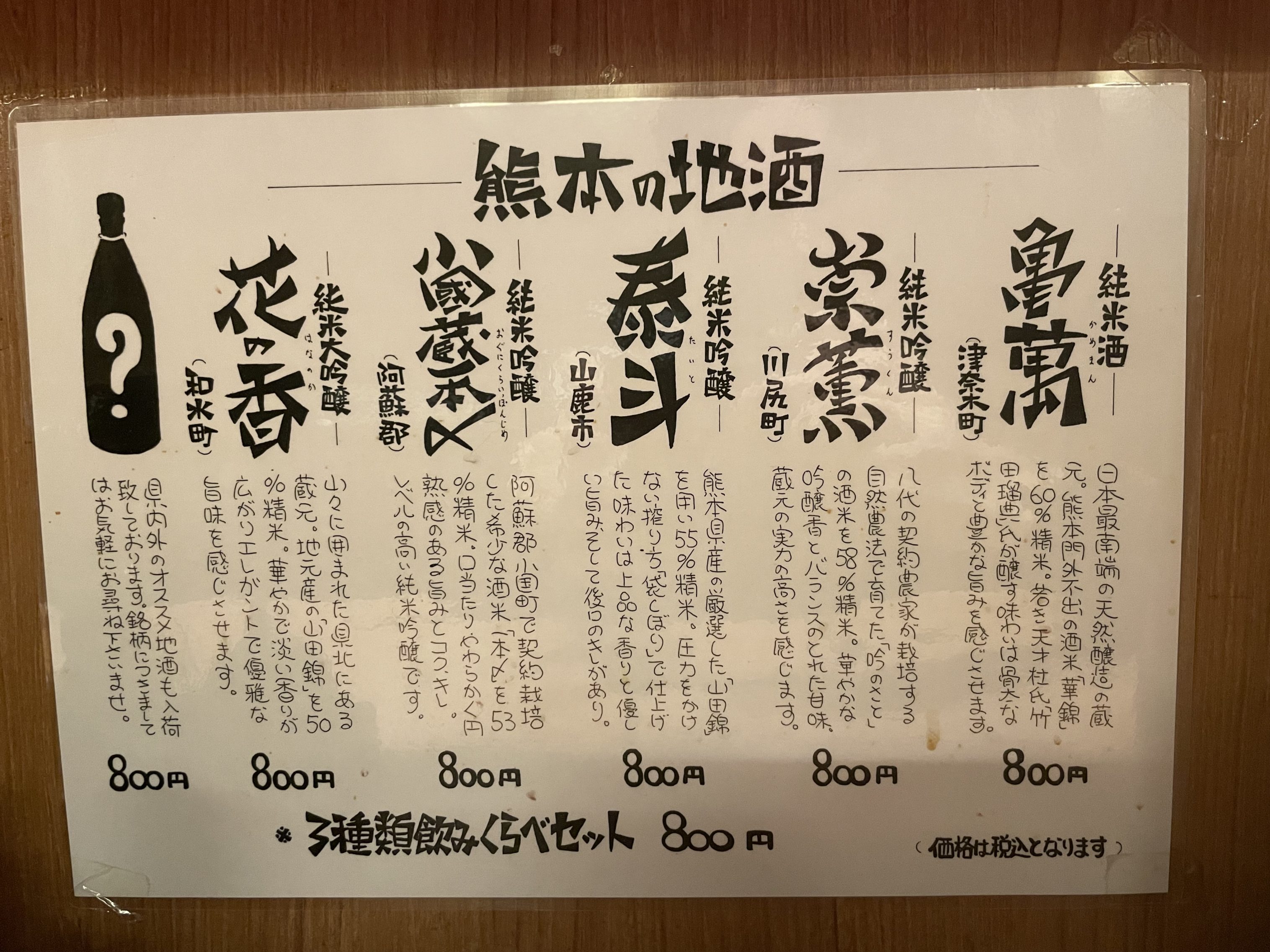 地酒(日本酒)のメニュー…おいおい、ラッキョウと日本酒だけで1時間過ごせるじゃんここ。