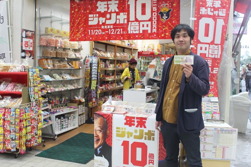 こんにちは、もうすぐ億万長者になる肥後ジャーナルの山田です。さっそく宝くじを買いに上通の老舗「八起堂」さんへやってきました。私のインスピレーションではこういうお店がよく当たります。連番で10枚買いました。3000円となかなかに高価ですが、これが10億円になると考えたら安い投資です。