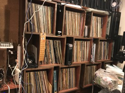 カウンター奥にはたくさんのレコード盤が並んでます。