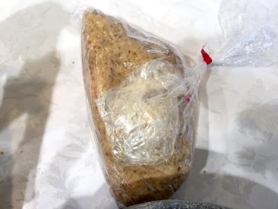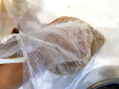ビニール袋に隙間なく詰め込みます。