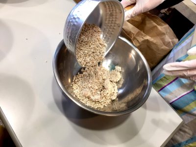 手袋をしたら持参したボウルに麹(大麦麹と塩麹)を貰いにいきます。