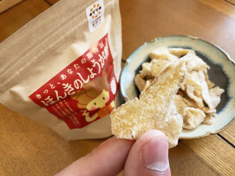 スライスした生姜をてんさい糖で煮詰めたものだそうで、原材料はその2つだけととてもシンプル!ドライフルーツみたいな感じです。
