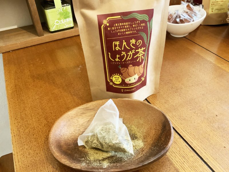 続いて、「ほんきのしょうが茶」。普段、私達が口にする根っこの部分だけじゃなくって、茎や葉っぱまで使ったお茶です。