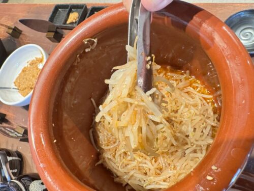 辛もやしを入れて、一部をもやしラーメンに。