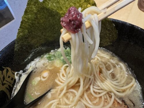 麺は王道の熊本ラーメンより、ほんのり細めな感じ。濃厚なのにスルスル入っていくのは、この細さが原因かもしれません。