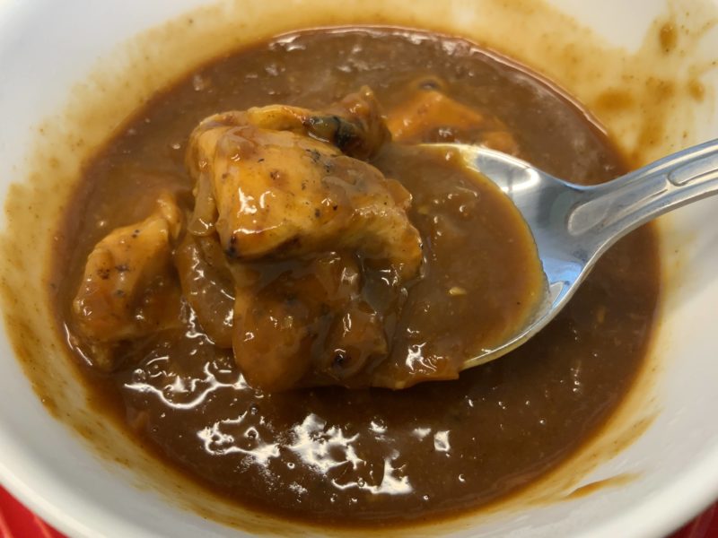 カレーも濃厚でコクのある味わいなのですが、それに負けないくらい炭火で焼いたお肉独特の香ばしい香りがします。