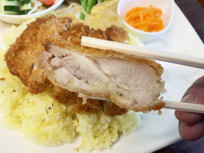 チキンカツも分厚くて衣は薄めでしっかりと。