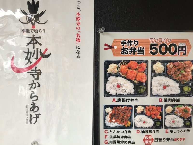 近くの会社勤めの方々から美味しいと噂の「本妙寺からあげ」。定食はもちろん、唐揚げ弁当もあります!持ち帰りもできますし、カウンターでも食べられます。