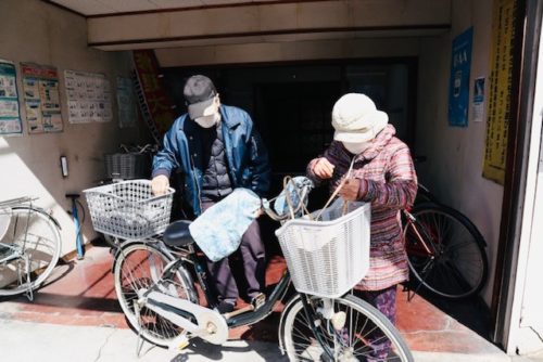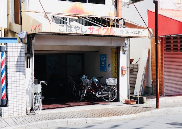 小林利行さん(86)の営む「こばやしサイクル」。ご夫婦でお向かいさん。