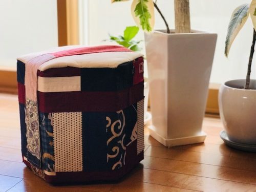 牛乳パック25,6本で作るそうで、あまりの布を継ぎ合わせて作っているそう。「そらたいぎゃ牛乳飲まなんね!」と笑うと「いろんな人に言うとくと持ってきてやらすよ!」との事。