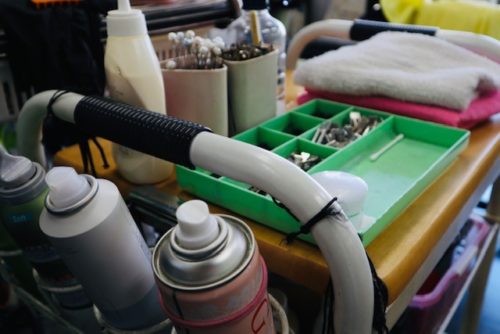 「どうもどうも~」とお客さんが来ました。「何か修理だったですか?」と私が聞くと「ツイさんの所でパーマしてもらう間自転車を置かせてもらってたんですよ。」と女性のお客さん。うなずきながら小林さんが自転車を出します。