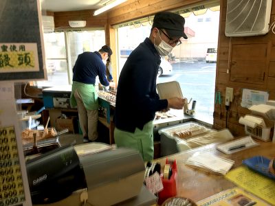 途切れないお客様に対応するスタッフも大変。お客様の希望する数と饅頭の製造がなかなか追いつかない!地元の皆さんに本当に愛されているスイーツなのですね!