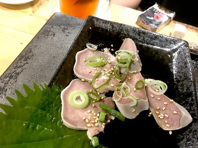 この日いただいたお通しは、湯通ししたお肉にネギ。ゴマをちりばめたもの。ポン酢とマッチしていて、これが本当に美味しい!