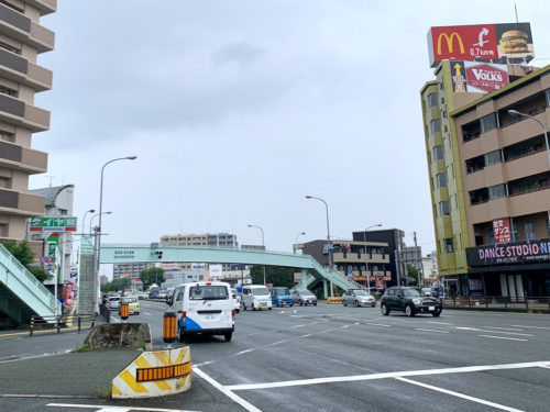 続いては中央区、子飼橋近くの交差点へ。タピオカブーム以前から女子高校生が集う、タピキングのあるところですね。