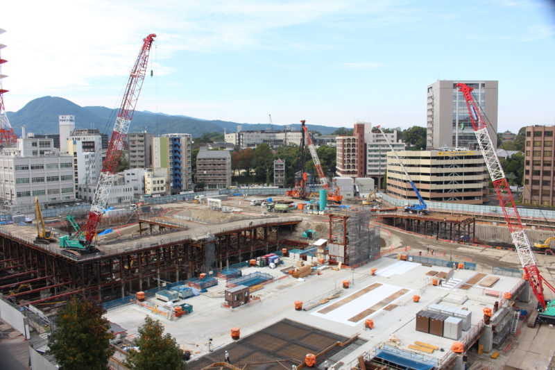 メインとなる複合施設は2019年夏に開業予定で、バスターミナル以外にも、マンションや映画館、ホテル、結婚式場、ショッピングセンター、MICE(コンベンション施設)などが入ることが発表されています。最近では、中に入るマンション「ザ・熊本ガーデンズ」が即日完売し抽せん販売になり、話題にあがりました。