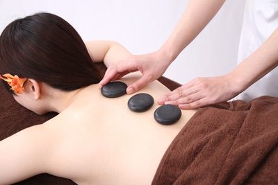 椿では、店先でホットストーンオイルケアを受けることができます。(※要予約)
