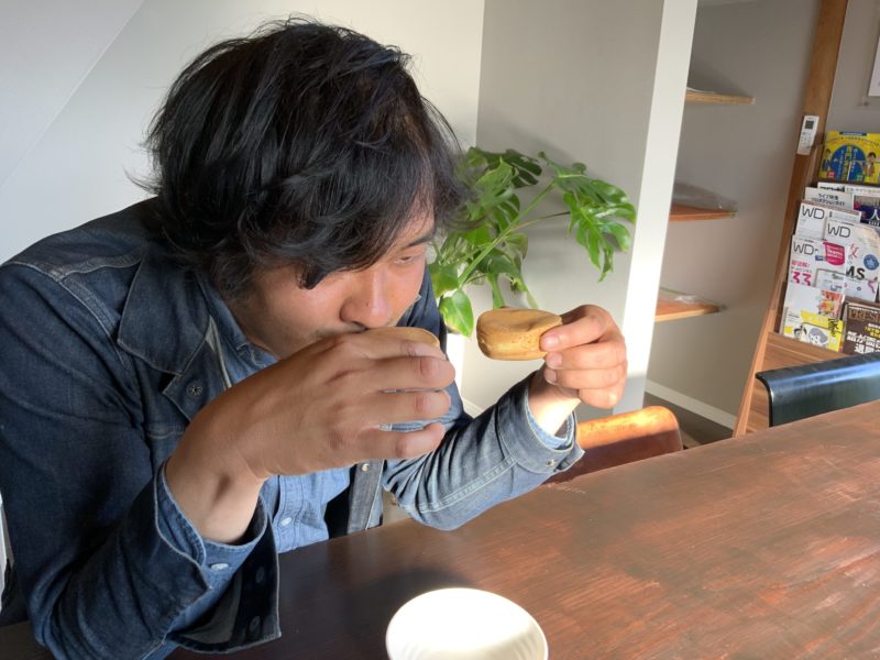続いて、匂いを嗅いでみます。中の餡子が違うので、きっと匂いも違うはずなんです。