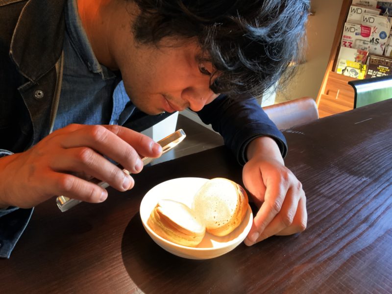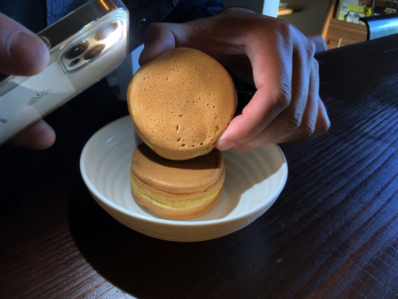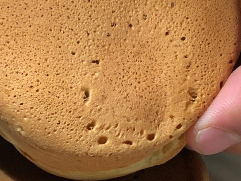 気泡の隙間から、若干、本当に若干ですがあんの色が分かる気がします。