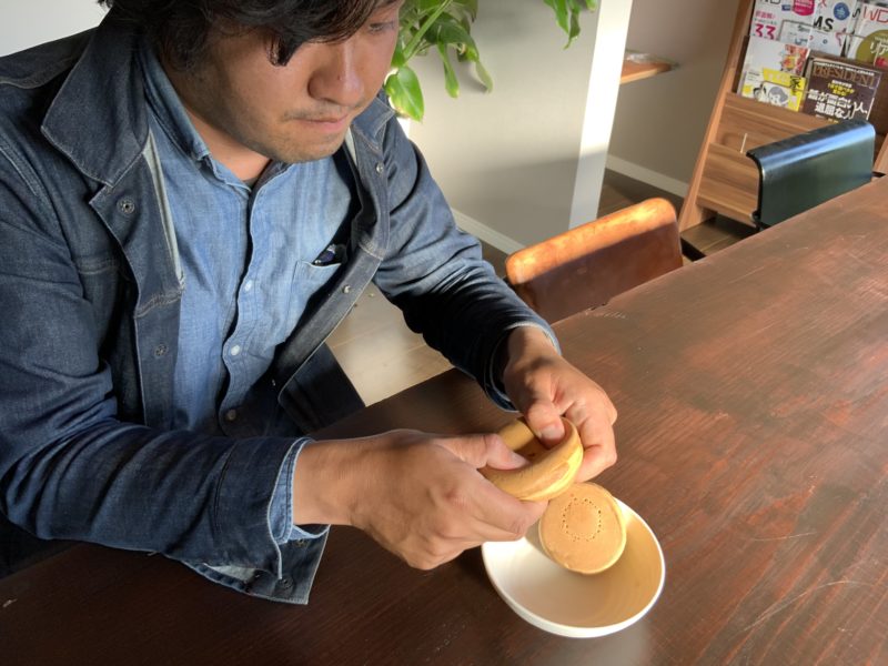 こちら、編集長のムトーが「山田さん、お土産にもらった蜂楽饅頭があるから食べていいよ。黒は私のだから残しといてね」なんて言うんです。