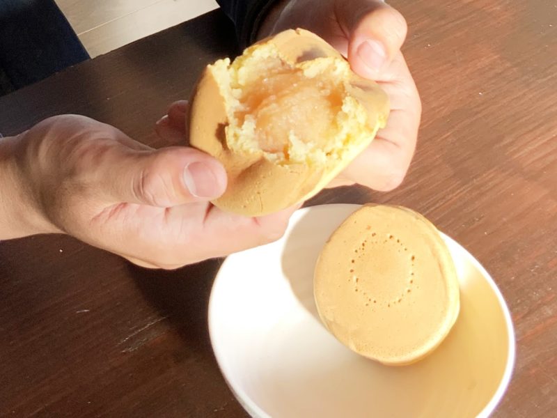 とはいえ、見た目じゃどっちがどっちだか分かりません。手前の焦げてるところが黒あんに見えましたが、ただ焦げているだけのようです。