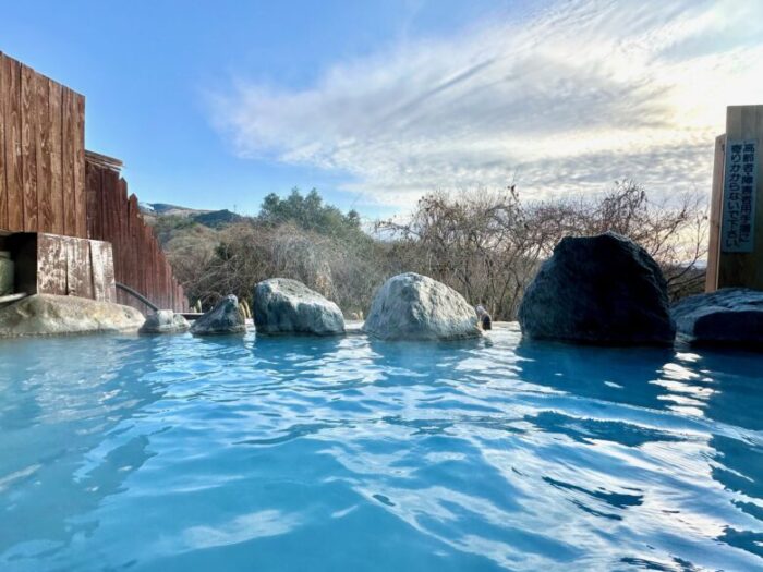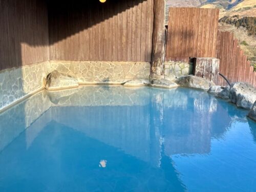 【阿蘇郡小国町】爽快感がハンパないホワイトブルーの温泉「豊礼の湯」。車中泊や地獄蒸しもできちゃう!