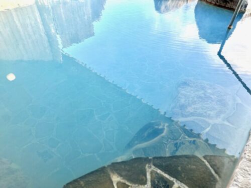 こんなホワイトブルーの色の温泉はなかなか見かけませんよね?