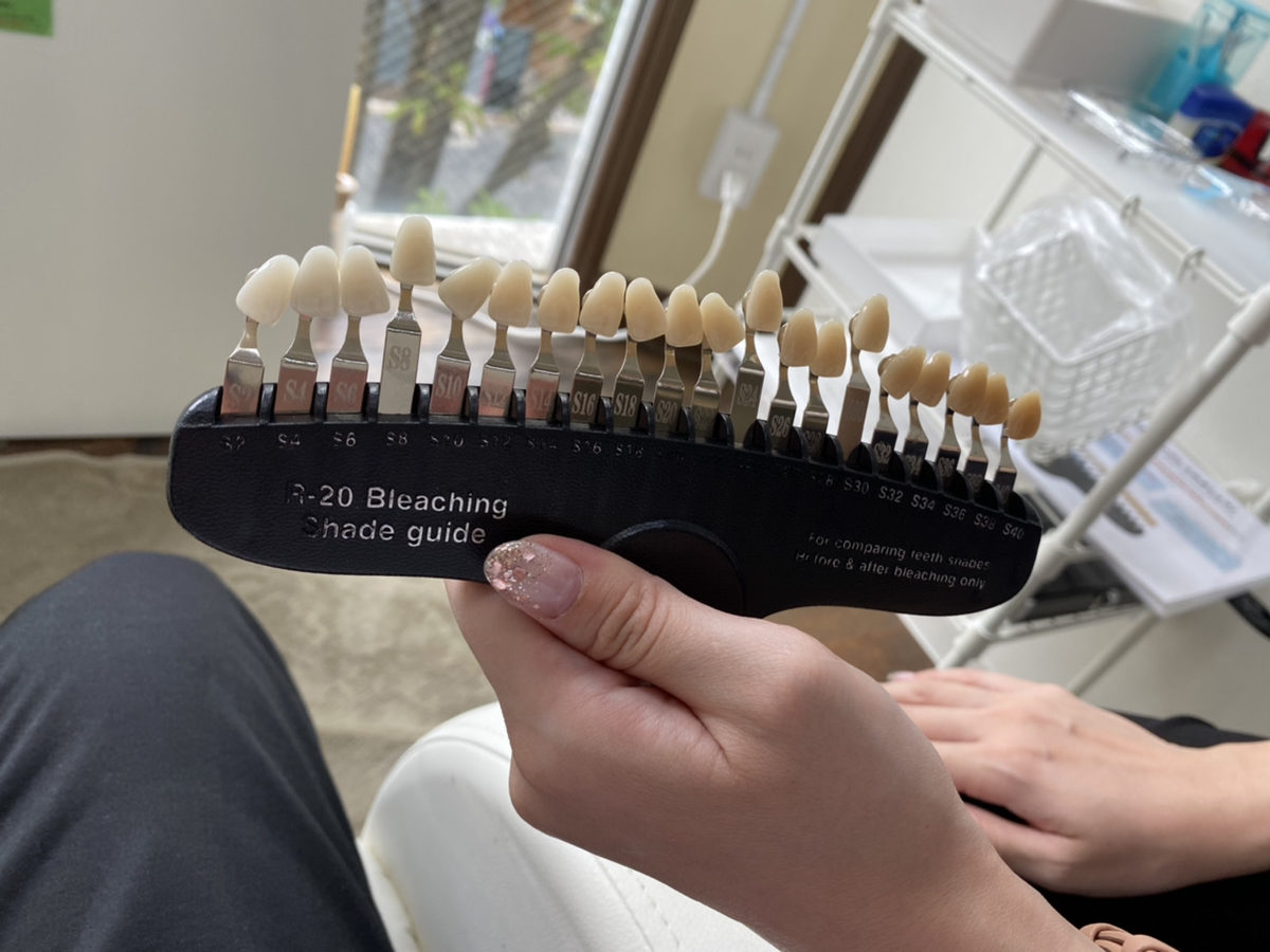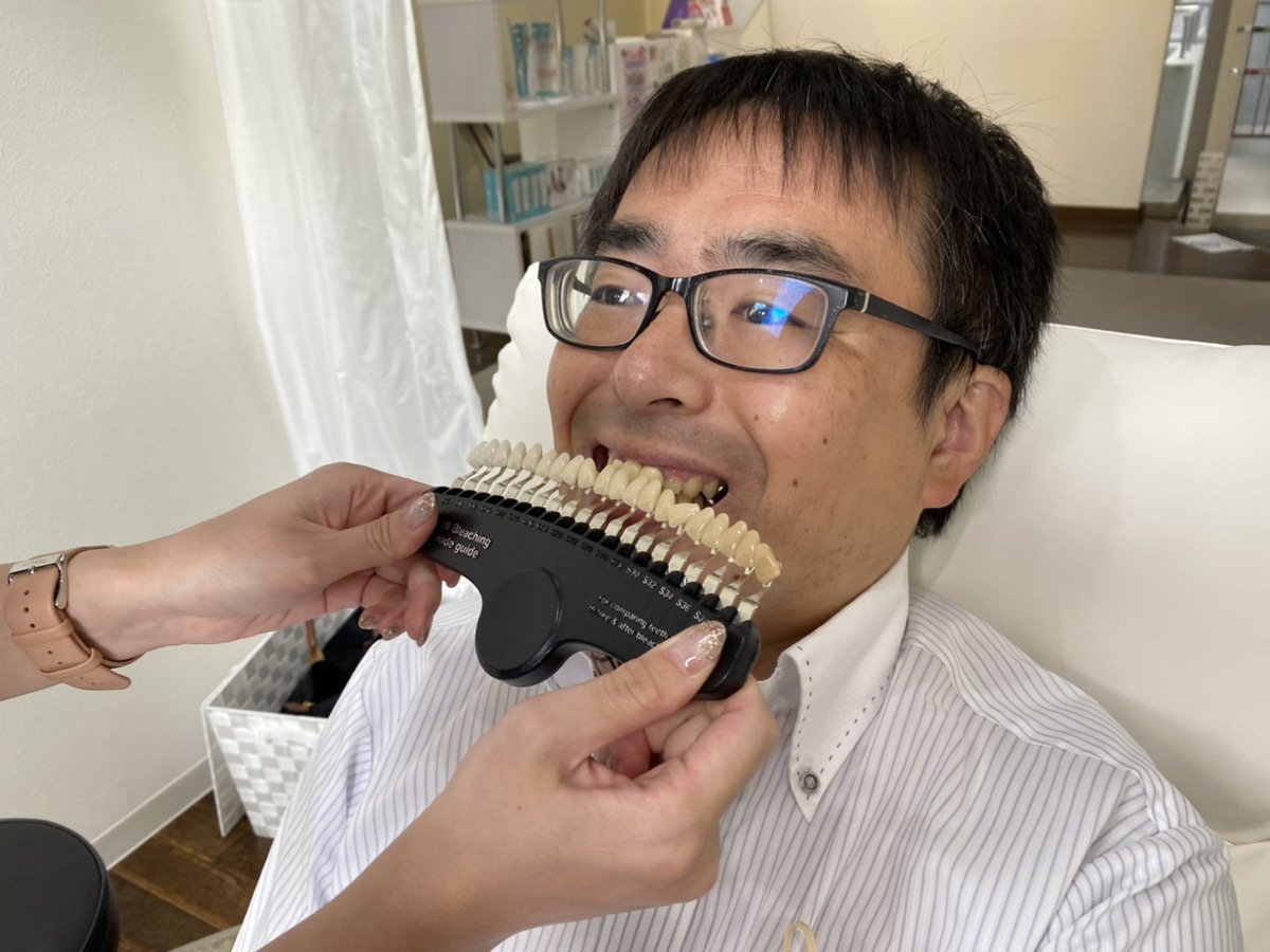 「ご安心ください。実は歯の色って人それぞれ生まれ持ったものなんです。弊社のホワイトニングはその生まれ持ったお色まで戻すという作業なので不自然に真っ白になりすぎることはないです」