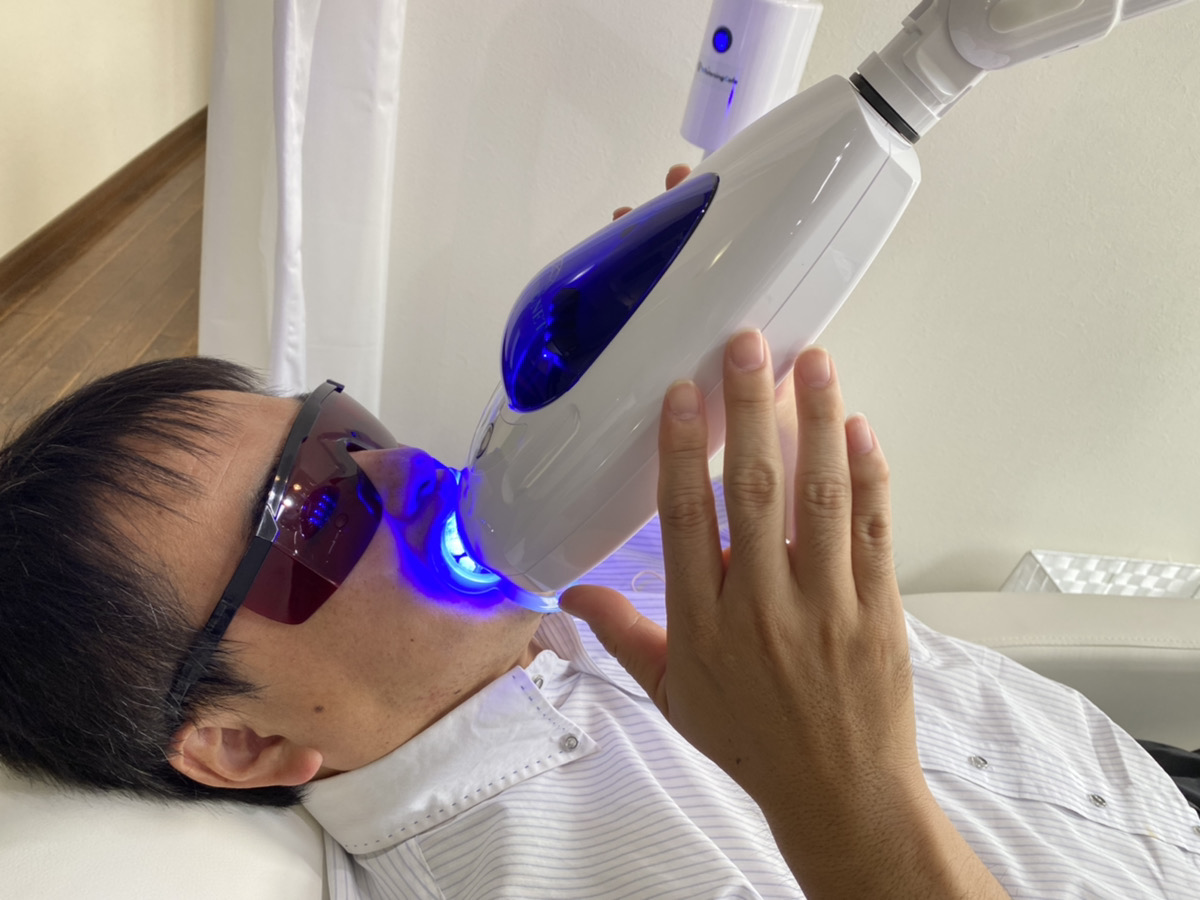 「結構多くの方がそのようなお悩みをお持ちなんですよ。今マスク生活なので気になるーって方も。こちらの機械は白くするだけではなく、お口の中の細菌を減らしてくれるのでそのお悩みが解消された!ってお声はいただきますね」