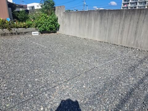 駐車場はお店から道路挟んで対角線上の砂利のところに2ヵ所ありますよ。