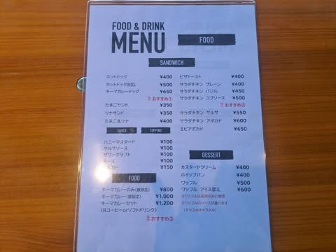 メニューはドリンクとフードがあります。