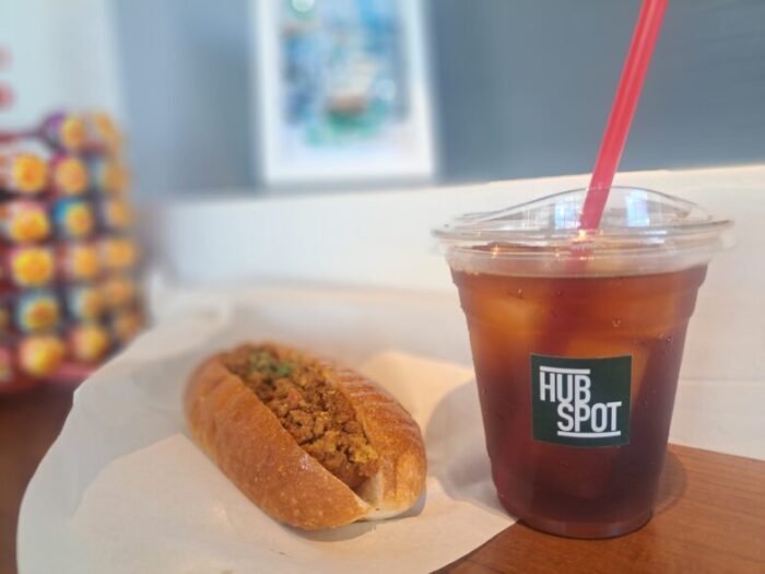 【HUB SPOT】のフードは朝の通勤でも片手で簡単に食べることができるようなメニューになっています。