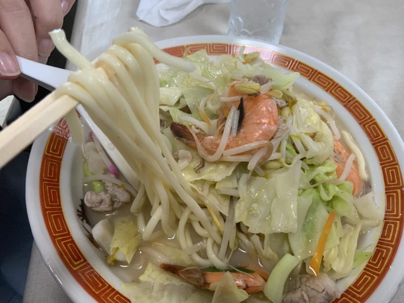 たっぷりの野菜の下に隠れた麺は、スープが絡まって絶品。コク深いスープはちゃんぽんの本場長崎を名乗るだけありめっちゃうまいです。