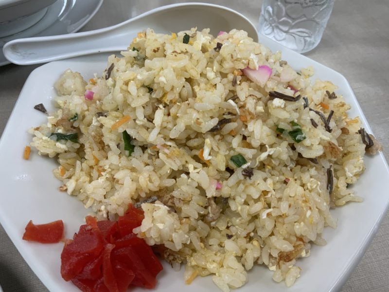 焼きめし(税込400円)も、優しい味わいでラーメンと一緒に食べても喧嘩しません。かまぼこも入っていてちょっとリッチ感あります。