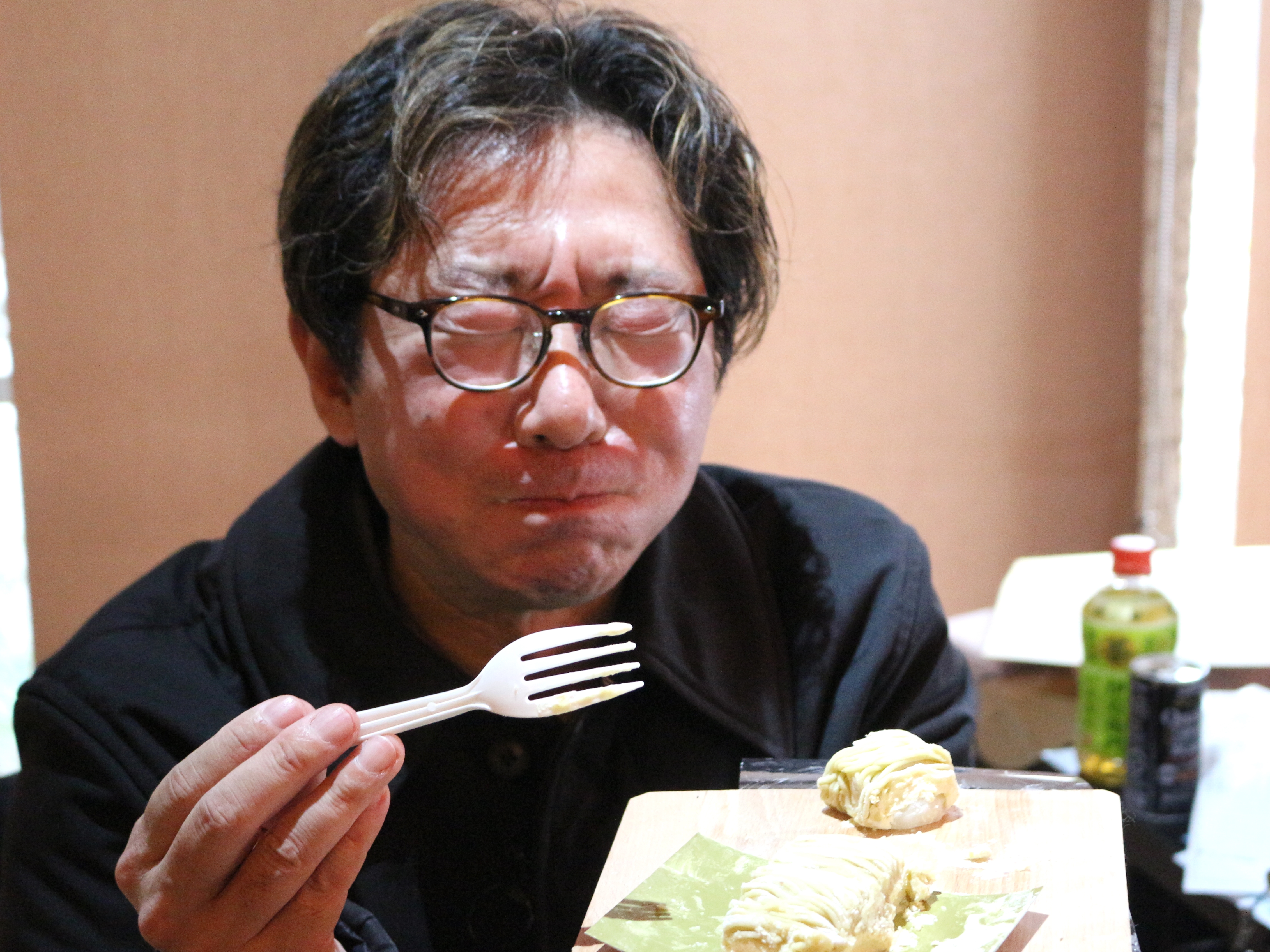 見てください。栗ペーストたっぷり。我慢できません。食べます!