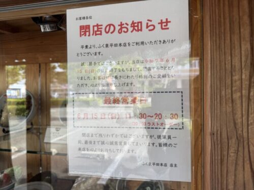 熊本市南区平田にある、ふく泉本店が、2025年6月15日(日)をもって閉店をされるそうです…。