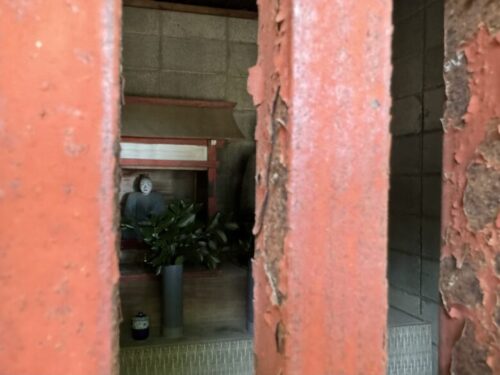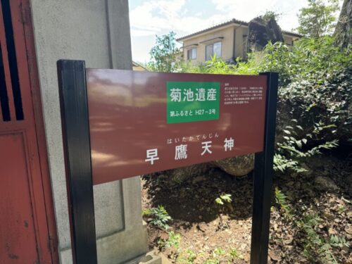 大楠の横に、「早鷹天神」というものがありました。南京錠で閉じられた小屋に厳重に収められておりました。